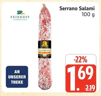 Jetzt im Angebot bei Marktkauf: Feinkost international serrano salami ✅ Aktion gültig vom 2-03 bis 7-03.