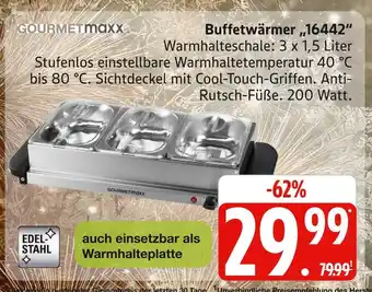 Jetzt im Angebot bei Marktkauf: Gourmetmaxx buffetwärmer 16442 ✅ Aktion gültig vom 22-12 bis 27-12.
