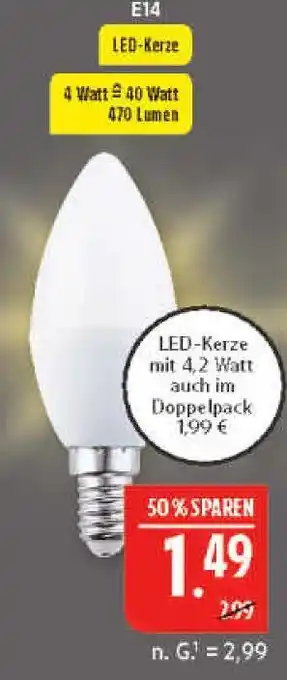 Den Preis von dem Led-kerze finden Sie auch oben auf der Website, zusammen mit dem Datum, ab wann das Angebot erhältlich ist. Sie können die Preise auch im aktuellen Marktkauf Prospekt nachhalten oder auf der Marktkauf Website nachschauen. Durch die Angebote können Sie sicher sein, die Marktkauf Produkte zum absoluten Bestpreis zu ergattern.