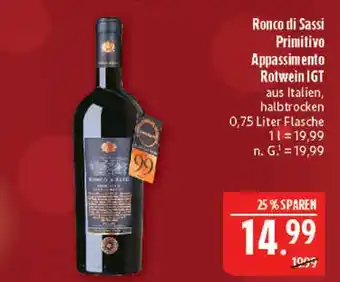 Ronco di sassi primitivo appassimento rotwein igt Angebote und Aktionen bei Marktkauf