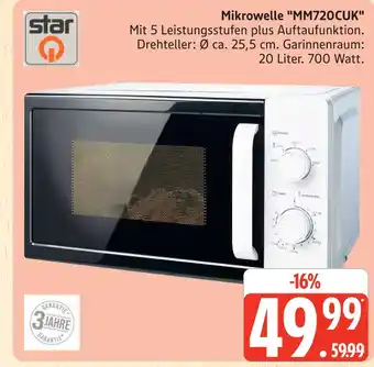 Jetzt im Angebot bei Marktkauf: Star mikrowelle mm720cuk ✅ Aktion gültig vom 19-01 bis 24-01.