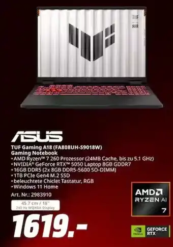 ASUS Gaming Notebook TUF Gaming A18 (FA808UH-59018W)-Angebot bei MediaMarkt