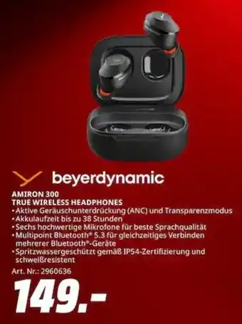 Den Preis von dem beyerdynamic TRUE WIRELESS HEADPHONES AMIRON 300 finden Sie auch oben auf der Website, zusammen mit dem Datum, ab wann das Angebot erhältlich ist. Sie können die Preise auch im aktuellen MediaMarkt Prospekt nachhalten oder auf der MediaMarkt Website nachschauen. Durch die Angebote können Sie sicher sein, die MediaMarkt Produkte zum absoluten Bestpreis zu ergattern.