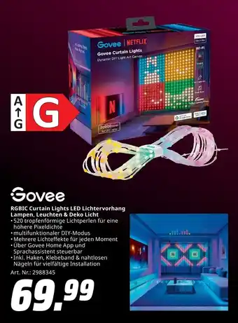 Jetzt im Angebot bei MediaMarkt: Govee RGBIC Curtain Lights LED Lichtervorhang Lampen, Leuchten & Deko Licht ✅ Aktion gültig vom 25-02 bis 3-03.