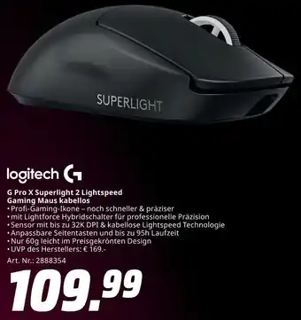 logitech G Pro X Superlight 2 Lightspeed Gaming Maus kabellos Aktion bei MediaMarkt