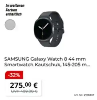Abgesehen von SAMSUNG Galaxy Watch 8.44 mm Smartwatch Kautschuk, 145-205 m..., bietet MediaMarkt eine Menge anderer Artikel an. Behalten Sie den wöchentlichen MediaMarkt Prospekt im Blick, um die besten Angebote und Aktionen nicht zu verpassen. Abgesehen von SAMSUNG Galaxy Watch 8.44 mm Smartwatch Kautschuk, 145-205 m... können Sie weitere, interessante Angebote entdecken: Apple WATCH Smartwatch Watch Serie 11 GPS (46 mm), Apple WATCH Smartwatch Watch SE 3 GPS (40 mm) & Smartwatch Galaxy Watch8 Classic, 46mm, LTE, Black.