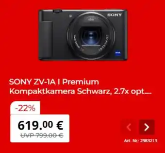 Jetzt im Angebot bei MediaMarkt: SONY ZV-1A I Premium Kompaktkamera Schwarz, 2.7x opt.... ✅ Aktion gültig vom 9-03 bis 22-03.