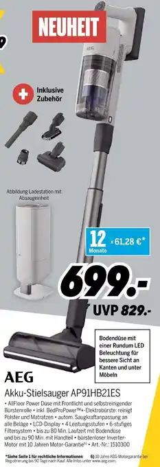 AEG Akku-Stielsauger AP91HB21ES Aktion bei MEDIMAX