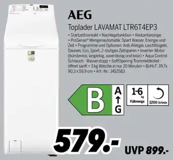 Jetzt im Angebot bei MEDIMAX: AEG Toplader LAVAMAT LTR6T4EP3 ✅ Aktion gültig vom 9-01 bis 16-01.