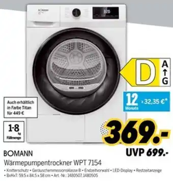 BOMANN Wärmepumpentrockner WPT 7154-Angebot bei MEDIMAX