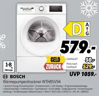 BOSCH Wärmepumpentrockner WTH85V94 Aktion bei MEDIMAX