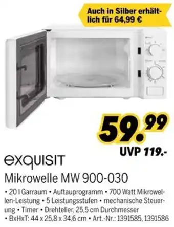 Jetzt im Angebot bei MEDIMAX: exquisit Mikrowelle MW 900-030 ✅ Aktion gültig vom 9-01 bis 16-01.