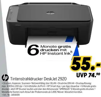 Jetzt im Angebot bei MEDIMAX: hp Tintenstrahldrucker DeskJet 2920 ✅ Aktion gültig vom 6-02 bis 13-02.