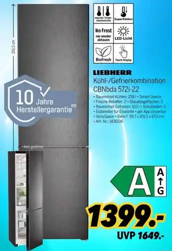 LIEBHERR Kühl-/Gefrierkombination CBNbda 572i-22 Angebote und Online Aktionen direkt aus dem aktuellen MEDIMAX Angebot