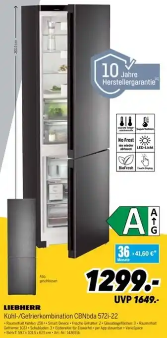 Jetzt im Angebot bei MEDIMAX: LIEBHERR Kühl-/Gefrierkombination CBNbda 572i-22 ✅ Aktion gültig vom 20-02 bis 27-02.