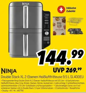 Jetzt im Angebot bei MEDIMAX: NINJA Double Stack XL 2-Ebenen Heißluftfritteuse 9,5 L SL400EU ✅ Aktion gültig vom 16-01 bis 23-01.