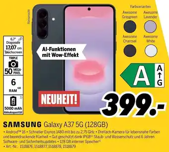 Jetzt im Angebot bei MEDIMAX: SAMSUNG Galaxy A37 5G (128GB) ✅ Aktion gültig vom 18-04 bis 24-04.