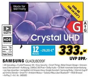 Jetzt im Angebot bei MEDIMAX: SAMSUNG GU43U8099F ✅ Aktion gültig vom 20-02 bis 27-02.