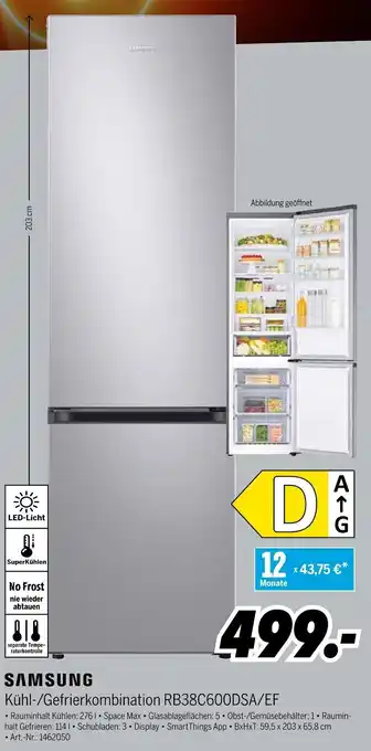 Jetzt im Angebot bei MEDIMAX: SAMSUNG Kühl-/Gefrierkombination RB38C600DSA/EF ✅ Aktion gültig vom 27-02 bis 6-03.
