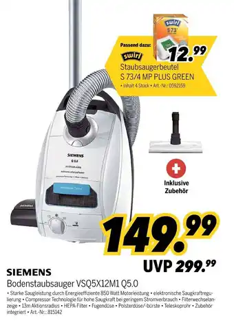 SIEMENS Bodenstaubsauger VSQ5X12M1 Q5.0 Aktion bei MEDIMAX