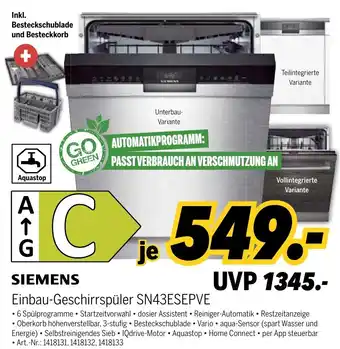 SIEMENS Einbau-Geschirrspüler SN43ESEPVE-Rabatt bei MEDIMAX