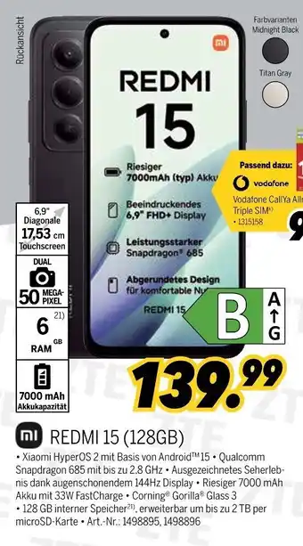 Den Preis von dem Xiaomi REDMI 15 (128GB) finden Sie auch oben auf der Website, zusammen mit dem Datum, ab wann das Angebot erhältlich ist. Sie können die Preise auch im aktuellen MEDIMAX Prospekt nachhalten oder auf der MEDIMAX Website nachschauen. Durch die Angebote können Sie sicher sein, die MEDIMAX Produkte zum absoluten Bestpreis zu ergattern.