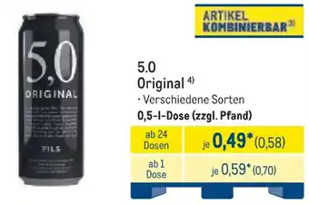 Den Preis von dem 5.0 Original finden Sie auch oben auf der Website, zusammen mit dem Datum, ab wann das Angebot erhältlich ist. Sie können die Preise auch im aktuellen METRO Prospekt nachhalten oder auf der METRO Website nachschauen. Durch die Angebote können Sie sicher sein, die METRO Produkte zum absoluten Bestpreis zu ergattern.