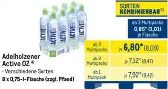 Den Preis von dem Adelholzener Active O2 finden Sie auch oben auf der Website, zusammen mit dem Datum, ab wann das Angebot erhältlich ist. Sie können die Preise auch im aktuellen METRO Prospekt nachhalten oder auf der METRO Website nachschauen. Durch die Angebote können Sie sicher sein, die METRO Produkte zum absoluten Bestpreis zu ergattern.