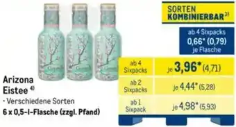 Den Preis von dem Arizona Eistee finden Sie auch oben auf der Website, zusammen mit dem Datum, ab wann das Angebot erhältlich ist. Sie können die Preise auch im aktuellen METRO Prospekt nachhalten oder auf der METRO Website nachschauen. Durch die Angebote können Sie sicher sein, die METRO Produkte zum absoluten Bestpreis zu ergattern.
