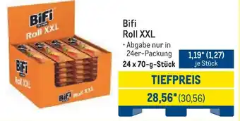 Den Preis von dem Bifi Roll XXL finden Sie auch oben auf der Website, zusammen mit dem Datum, ab wann das Angebot erhältlich ist. Sie können die Preise auch im aktuellen METRO Prospekt nachhalten oder auf der METRO Website nachschauen. Durch die Angebote können Sie sicher sein, die METRO Produkte zum absoluten Bestpreis zu ergattern.