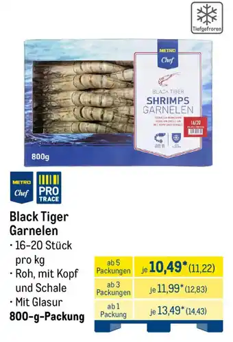 Den Preis von dem Black Tiger Garnelen finden Sie auch oben auf der Website, zusammen mit dem Datum, ab wann das Angebot erhältlich ist. Sie können die Preise auch im aktuellen METRO Prospekt nachhalten oder auf der METRO Website nachschauen. Durch die Angebote können Sie sicher sein, die METRO Produkte zum absoluten Bestpreis zu ergattern.