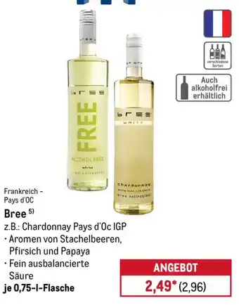 Jetzt im Angebot bei METRO: Bree z.B.: Chardonnay Pays d'Oc IGP ✅ Aktion gültig vom 2-02 bis 7-02.
