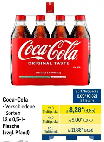 Den Preis von dem Coca-Cola finden Sie auch oben auf der Website, zusammen mit dem Datum, ab wann das Angebot erhältlich ist. Sie können die Preise auch im aktuellen METRO Prospekt nachhalten oder auf der METRO Website nachschauen. Durch die Angebote können Sie sicher sein, die METRO Produkte zum absoluten Bestpreis zu ergattern.
