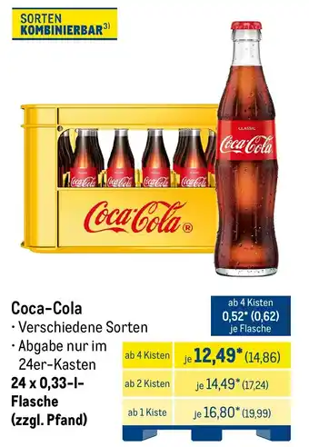 Den Preis von dem Coca Cola finden Sie auch oben auf der Website, zusammen mit dem Datum, ab wann das Angebot erhältlich ist. Sie können die Preise auch im aktuellen METRO Prospekt nachhalten oder auf der METRO Website nachschauen. Durch die Angebote können Sie sicher sein, die METRO Produkte zum absoluten Bestpreis zu ergattern.