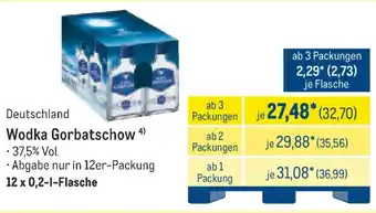 Den Preis von dem Deutschland Wodka Gorbatschow finden Sie auch oben auf der Website, zusammen mit dem Datum, ab wann das Angebot erhältlich ist. Sie können die Preise auch im aktuellen METRO Prospekt nachhalten oder auf der METRO Website nachschauen. Durch die Angebote können Sie sicher sein, die METRO Produkte zum absoluten Bestpreis zu ergattern.