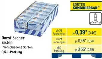Den Preis von dem Durstlöscher Eistee finden Sie auch oben auf der Website, zusammen mit dem Datum, ab wann das Angebot erhältlich ist. Sie können die Preise auch im aktuellen METRO Prospekt nachhalten oder auf der METRO Website nachschauen. Durch die Angebote können Sie sicher sein, die METRO Produkte zum absoluten Bestpreis zu ergattern.