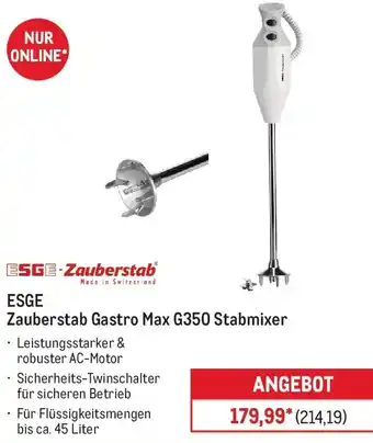 Jetzt im Angebot bei METRO: ESGE Zauberstab Gastro Max G350 Stabmixer ✅ Aktion gültig vom 21-12 bis 27-12.
