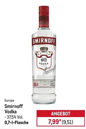 Jetzt im Angebot bei METRO: Europa Smirnoff Vodka ✅ Aktion gültig vom 26-01 bis 31-01.