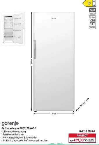 Jetzt im Angebot bei METRO: gorenje Gefrierschrank FNC717DAW5 ✅ Aktion gültig vom 2-02 bis 7-02.
