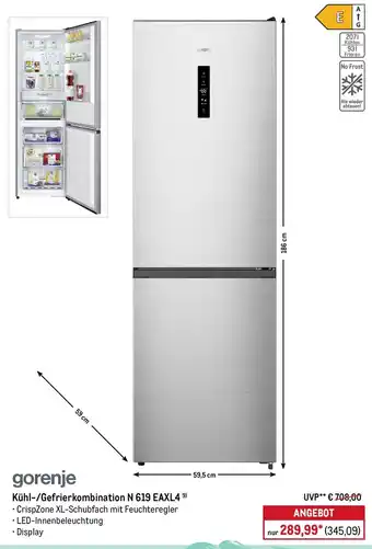 Jetzt im Angebot bei METRO: gorenje Kühl-/Gefrierkombination N 619 EAXL4 ✅ Aktion gültig vom 5-01 bis 10-01.