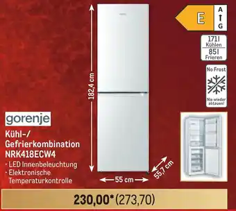 gorenje Kühl-/ Gefrierkombination NRK418ECW4-Angebot bei METRO