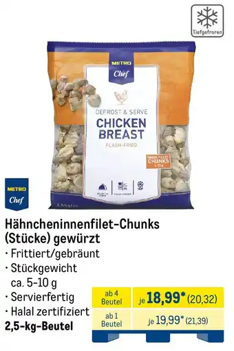 Jetzt im Angebot bei METRO: Hähncheninnenfilet-Chunks (Stücke) gewürzt ✅ Aktion gültig vom 26-01 bis 31-01.