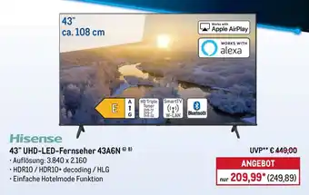 Jetzt im Angebot bei METRO: Hisense 43" UHD-LED Fernseher 43A6N ✅ Aktion gültig vom 22-12 bis 27-12.