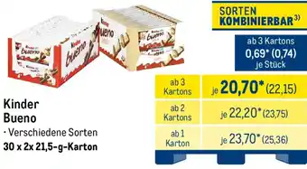 Den Preis von dem Kinder Bueno finden Sie auch oben auf der Website, zusammen mit dem Datum, ab wann das Angebot erhältlich ist. Sie können die Preise auch im aktuellen METRO Prospekt nachhalten oder auf der METRO Website nachschauen. Durch die Angebote können Sie sicher sein, die METRO Produkte zum absoluten Bestpreis zu ergattern.