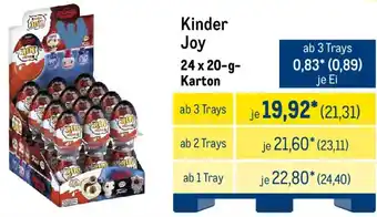 Den Preis von dem Kinder Joy finden Sie auch oben auf der Website, zusammen mit dem Datum, ab wann das Angebot erhältlich ist. Sie können die Preise auch im aktuellen METRO Prospekt nachhalten oder auf der METRO Website nachschauen. Durch die Angebote können Sie sicher sein, die METRO Produkte zum absoluten Bestpreis zu ergattern.