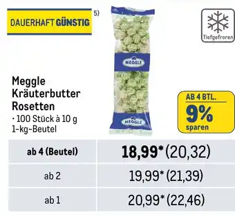 Den Preis von dem Meggle Kräuterbutter Rosetten • 100 Stück à 10 g 1-kg-Beutel finden Sie auch oben auf der Website, zusammen mit dem Datum, ab wann das Angebot erhältlich ist. Sie können die Preise auch im aktuellen METRO Prospekt nachhalten oder auf der METRO Website nachschauen. Durch die Angebote können Sie sicher sein, die METRO Produkte zum absoluten Bestpreis zu ergattern.