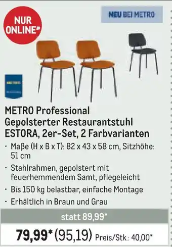 METRO Professional Gepolsterter Restaurantstuhl ESTORA, 2er-Set, 2 Farbvarianten Angebote und Aktionen bei METRO