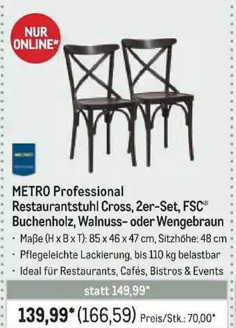 METRO Professional Restaurantstuhl Cross, 2er-Set, FSC® Buchenholz, Walnuss- oder Wengebraun-Angebot bei METRO