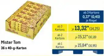 Abgesehen von Mister Tom, bietet METRO eine Menge anderer Artikel an. Behalten Sie den wöchentlichen METRO Prospekt im Blick, um die besten Angebote und Aktionen nicht zu verpassen. Abgesehen von Mister Tom können Sie weitere, interessante Angebote entdecken: Boxbett tom, Mister choc schokoladenriegel & Mister Choc Schokoriegel Minis.