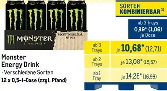 Den Preis von dem Monster Energy Drink finden Sie auch oben auf der Website, zusammen mit dem Datum, ab wann das Angebot erhältlich ist. Sie können die Preise auch im aktuellen METRO Prospekt nachhalten oder auf der METRO Website nachschauen. Durch die Angebote können Sie sicher sein, die METRO Produkte zum absoluten Bestpreis zu ergattern.